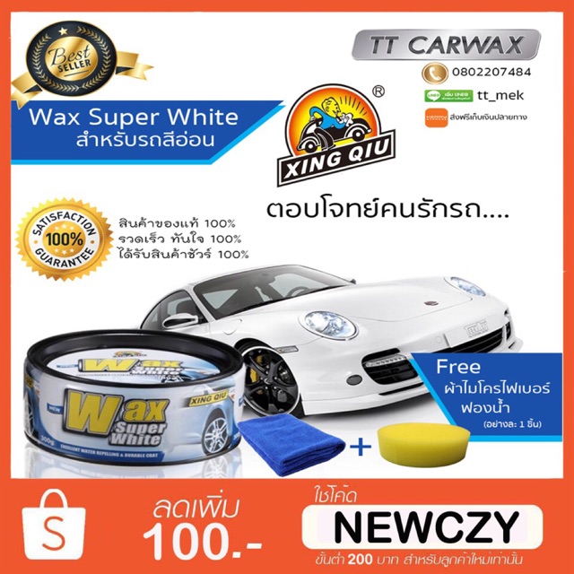 - - โปรโมชั่น Wax Super White แว๊กซ์ขี้ผึ้ง เคลือบสีรถ เคลือบแก้ว สูตรสำหรับรถสีขาวและสีอ่อน