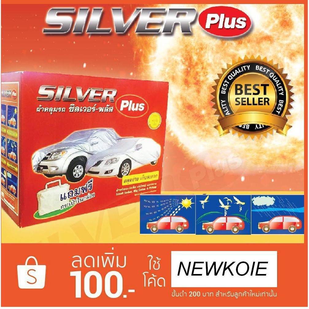 - ถูกที่สุด ผ้าคลุมรถ SILVER Plus สำหรับรถยนต์ทุกขนาด กันน้ำ 100 % กัน UV ซื้อเลยตอนนี้