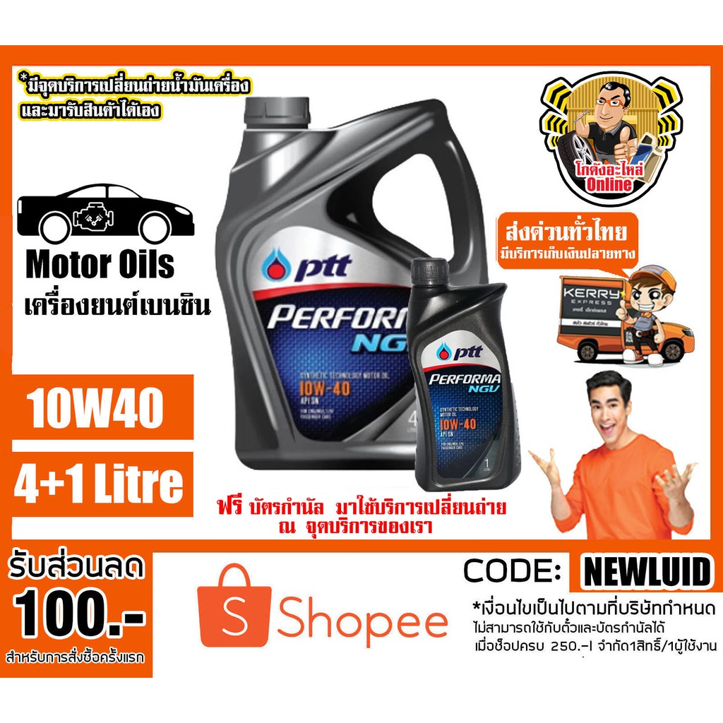 ค้นหาร้านขาย น้ำมันเครื่อง เบนซิน ปตท PTT Performa NGV 10W-40 กึ่งสังเคราะห์ [4+1 ลิตร] มีสินค้าพร้อมจัดส่ง สั่งซื้อง่ายๆ ชำระเงินปลายทางได้