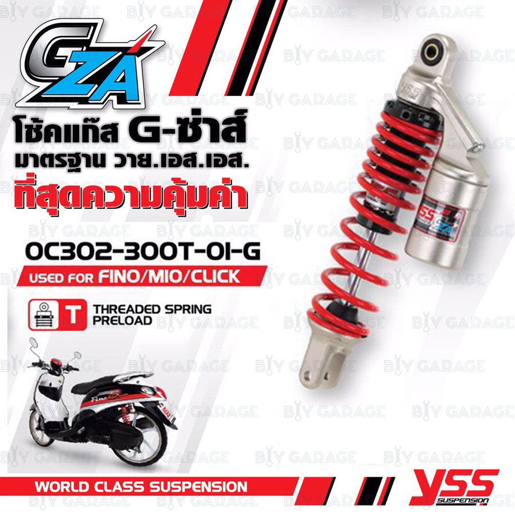 - ชื่อสินค้า YSS โช๊คแก๊ส G-ซ่าส์ GZA มาใหม่ ใช้อัพเกรดสำหรับ FINO MIO CLICK OC302-300T-01-G โช๊คเดี่ยวหลังสำห